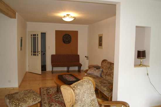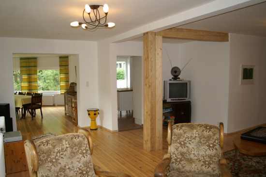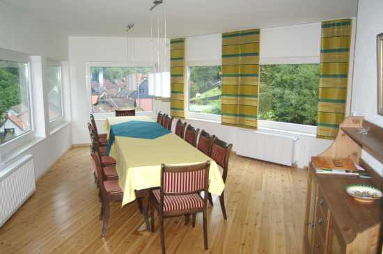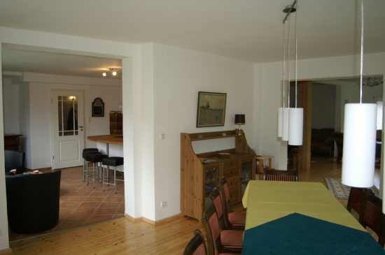 und besitzt einen großen Essbereich mit einer langen Tafel (1 Kinderstuhl vorhanden) mit “Wintergartenflair”.
